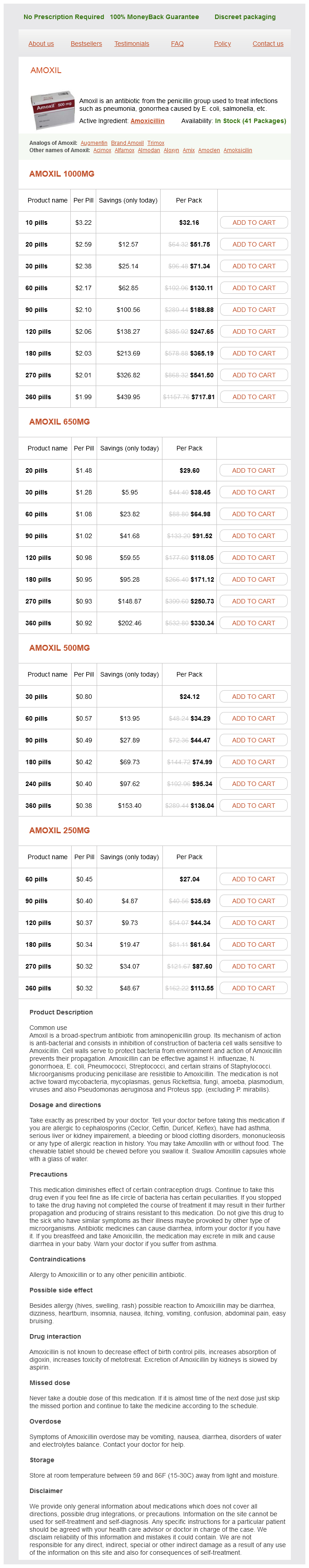 Amoxil dosages: 500 mg, 250 mgAmoxil packs: 10 pills, 20 pills, 30 pills, 60 pills, 90 pills, 120 pills, 180 pills, 270 pills, 360 pills, 240 pills