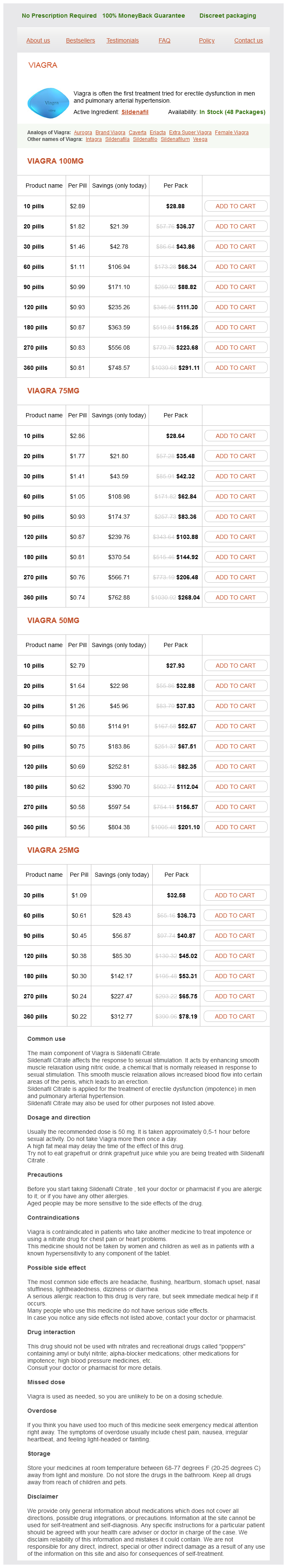 Sildenafilo dosages: 100 mg, 75 mg, 50 mg, 25 mgSildenafilo packs: 10 pills, 20 pills, 30 pills, 60 pills, 90 pills, 120 pills, 180 pills, 270 pills, 360 pills